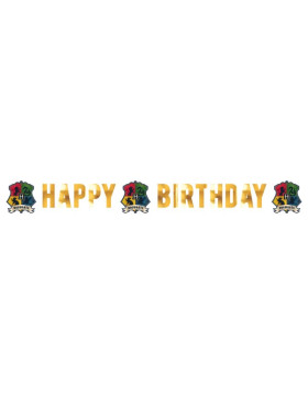 A segunda grinalda apresenta um caldeirão, cogumelo, besouro e globos oculares com detalhes em forma de favo de mel; lua e estrelas em...
