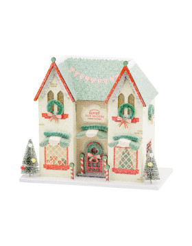 Prepare-se para a mais doce das delícias natalinas com nossa Confeitaria da Vila de Natal. Adicione um toque festivo à sua decoração com esta vila de papel resistente. Perfeita para dar um charme especial à sua coleção de vilas de Natal. Boas Festas!