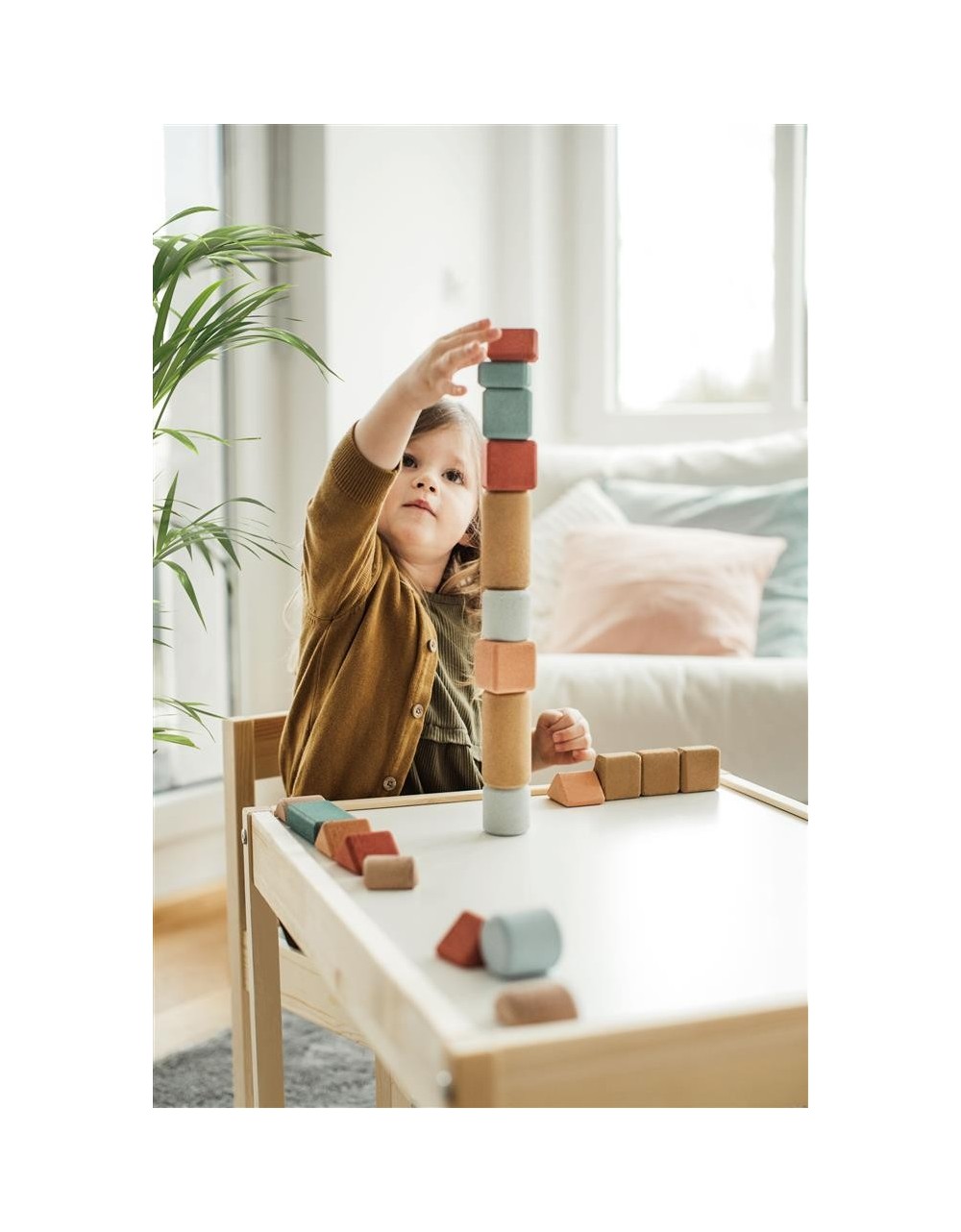 Blocos de cortiça, os pequenos aprendem o princípio de causa e efeito, desenvolvem a motricidade fina e soltam a imaginação. Devido à sua natureza excecional, eles podem empilhá-los, alinhá-los, criar edifícios e torres fantasticamente bem, bem como fazer uma torre desmoronar corretamente, mas sem nenhum ruído ou perigo de ferimentos. Eles são perfeitamente adequados para estimular habilidades, e tudo isso com um toque muito especial.