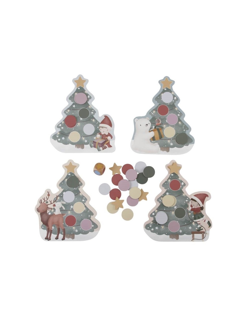 Entre no espírito de Natal com este feliz jogo de família. Quem é o decorador de árvore de Natal mais rápido? Todos recebem um cartão de árvore de Natal com ilustrações de 5 pedentes coloridos e um topper. Reveze-se lançando o dado para ver qual cor você pode adicionar ao seu cartão. Quem decorar totalmente sua árvore primeiro é o vencedor. O jogo da árvore de Natal ajudará seu filho a desenvolver várias habilidades, como concentração.