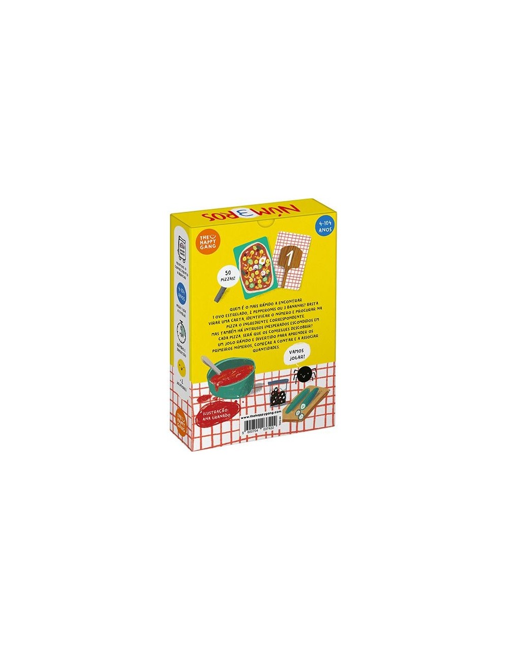 Basta virar uma carta, identificar o número e procurar na pizza o ingrediente correspondente.