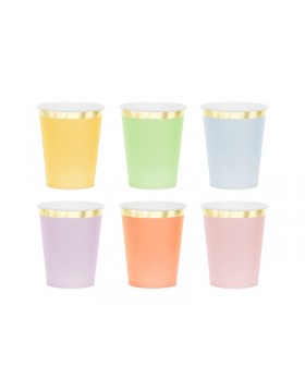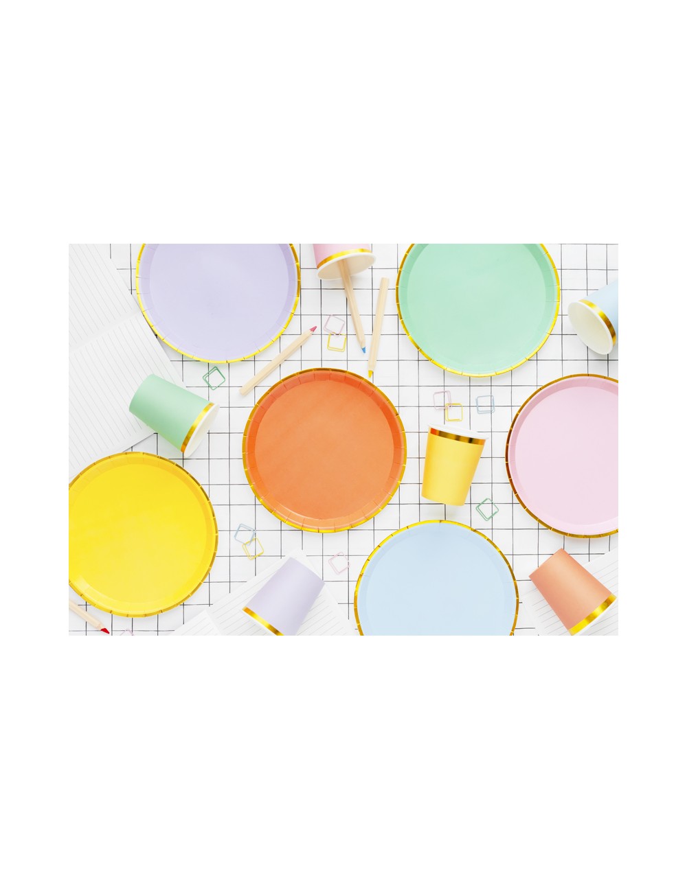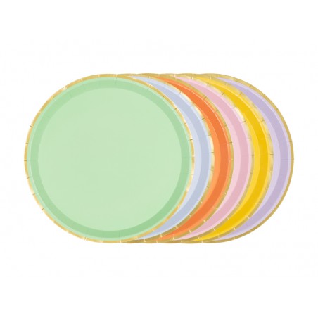 Pratos pastel e dourado