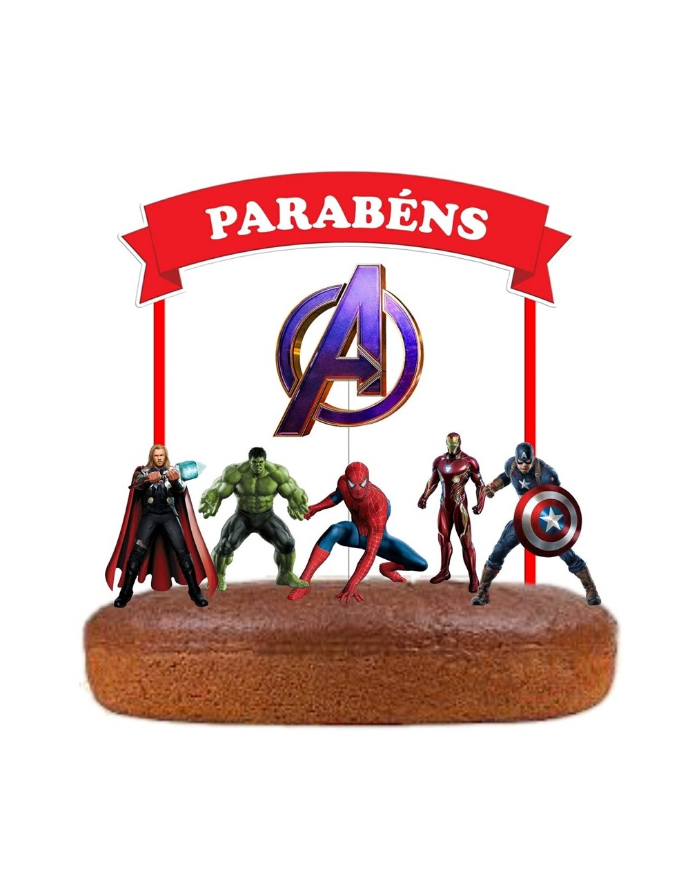 Kit topo de bolo impresso a laser em cartolina de 300 gr. laminada