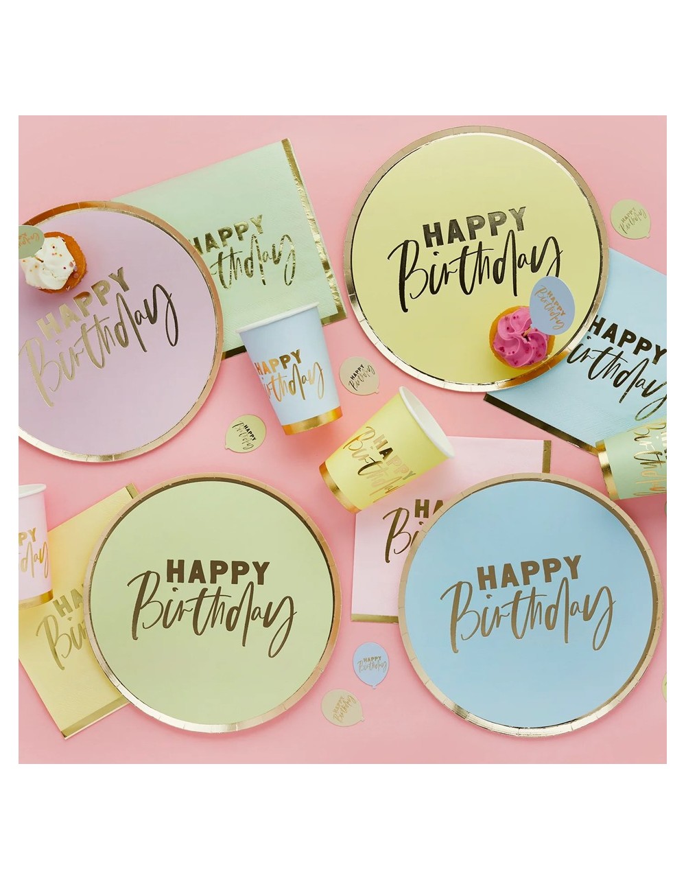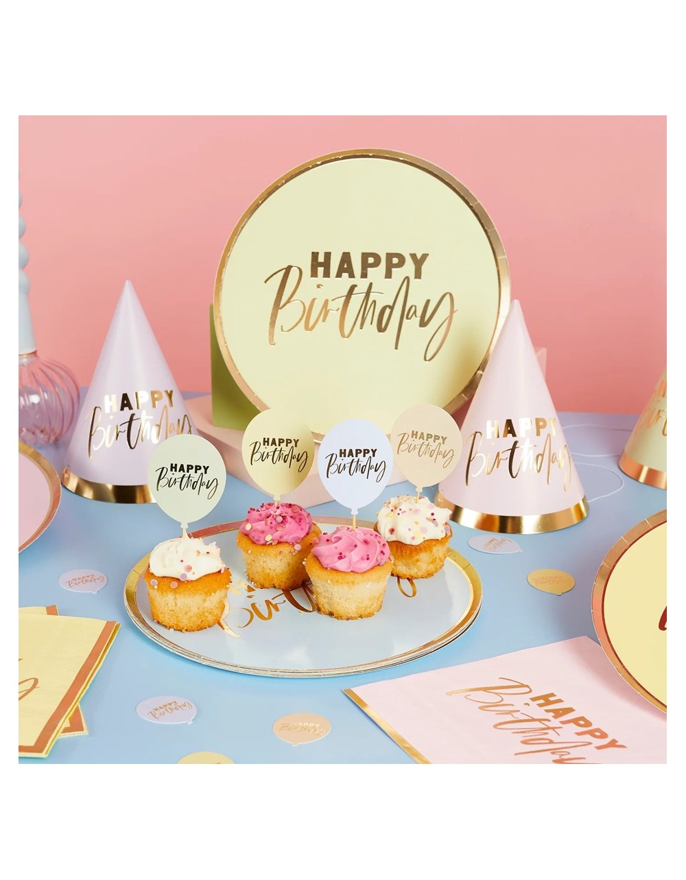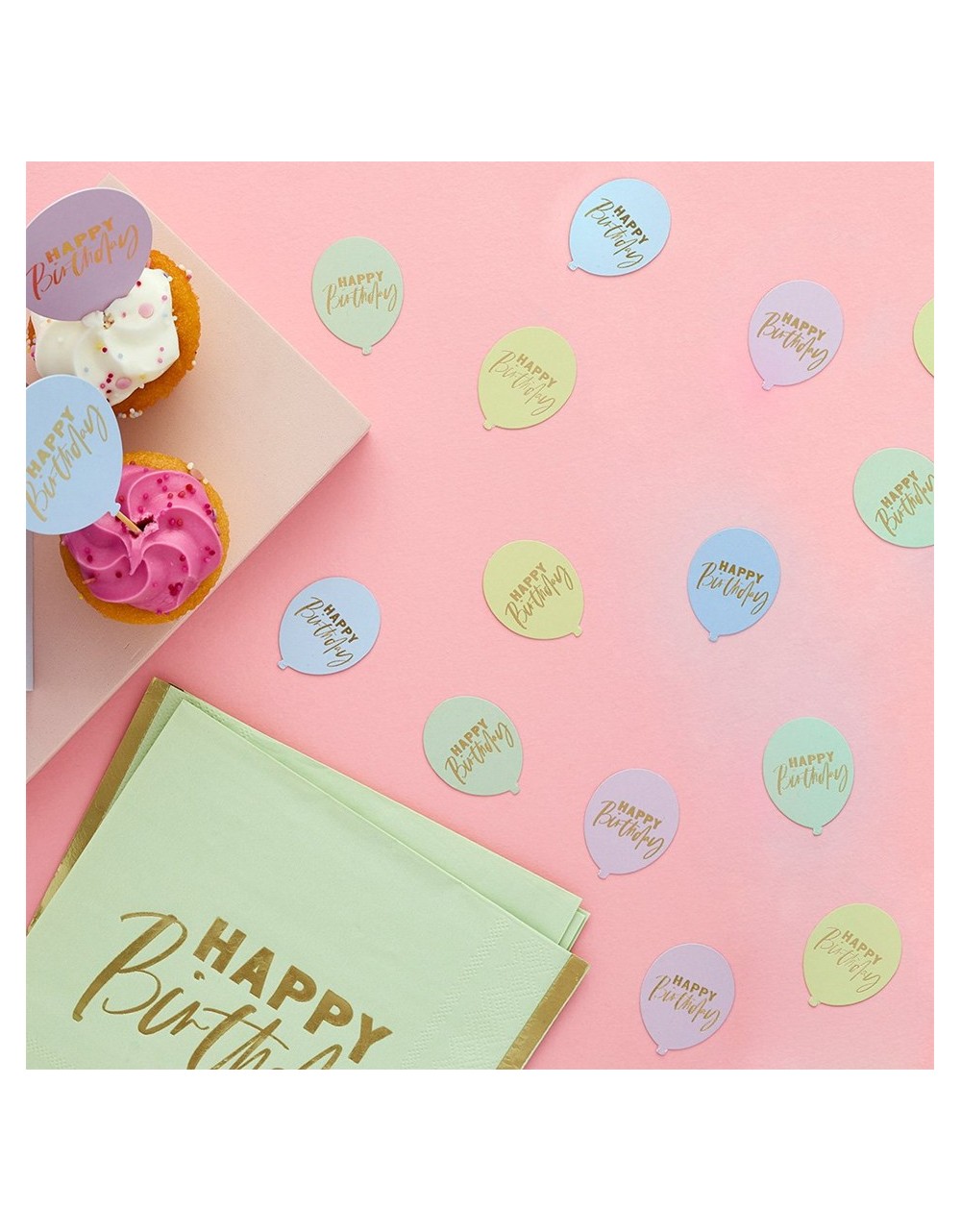Confettis balões Happy Birthday pastel