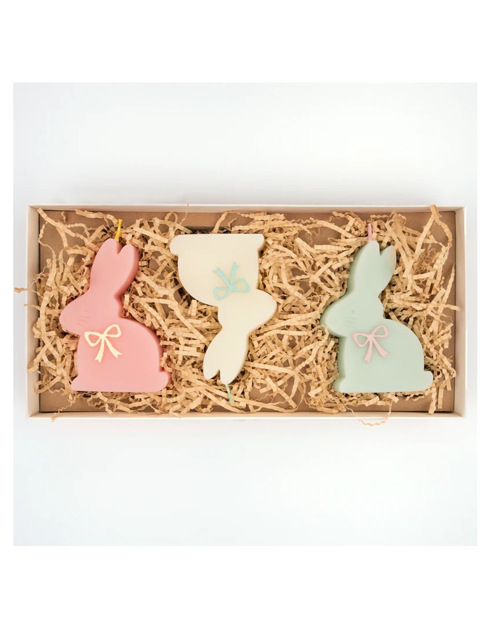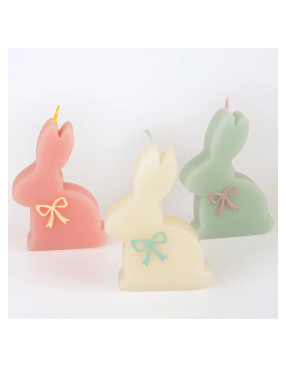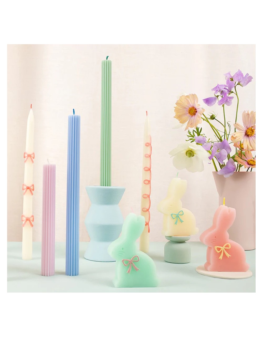 Essas velas em formato de coelho apresentam laços em relevo e pintados à mão para um efeito estiloso. E nós até adicionamos pavios coloridos para um toque especial extra. Elas ficarão maravilhosas na sua lareira ou mesa de festa, e também são perfeitas como um presente para a anfitriã.