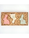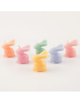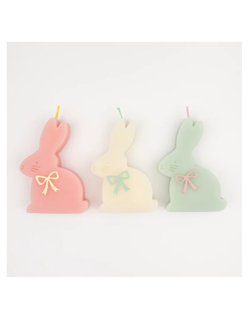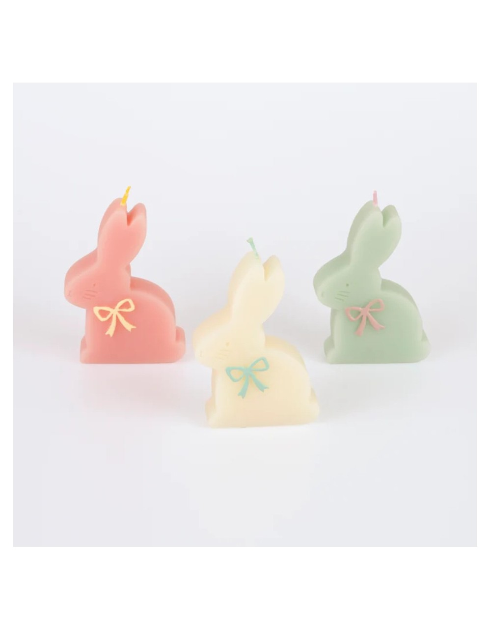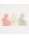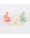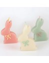 3 velas moldadas em formato de coelho em menta, marfim e rosa com 11cm