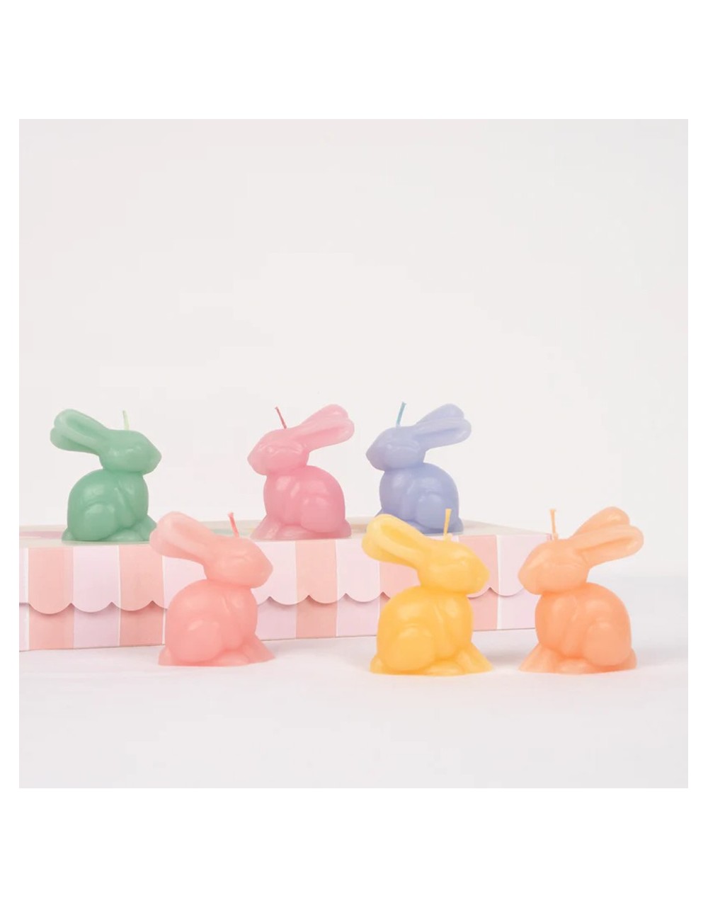 6 velas em formato de coelho com seis cores diferentes com 6,7cm