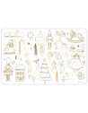 Inclui: 8 marcadores de lugar com 2 designs diferentes para colorir