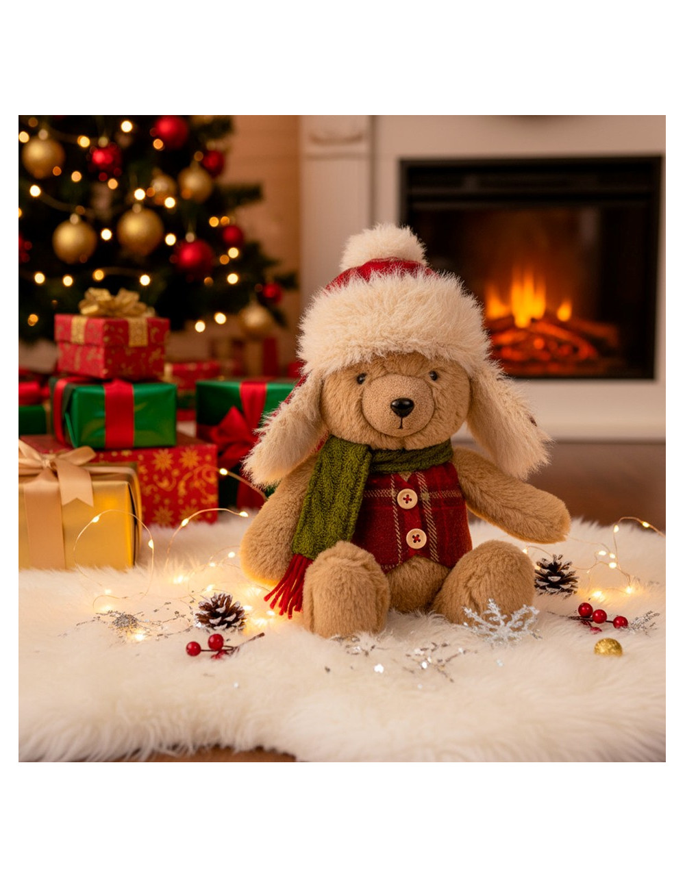 Este urso de peluche sentado é irresistível, perfeito para decorar sua casa com um toque de ternura durante o inverno e o Natal.