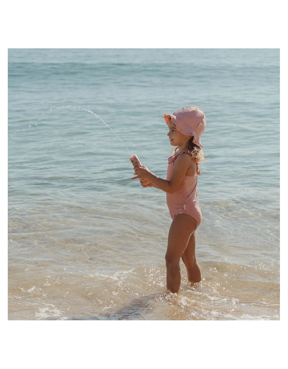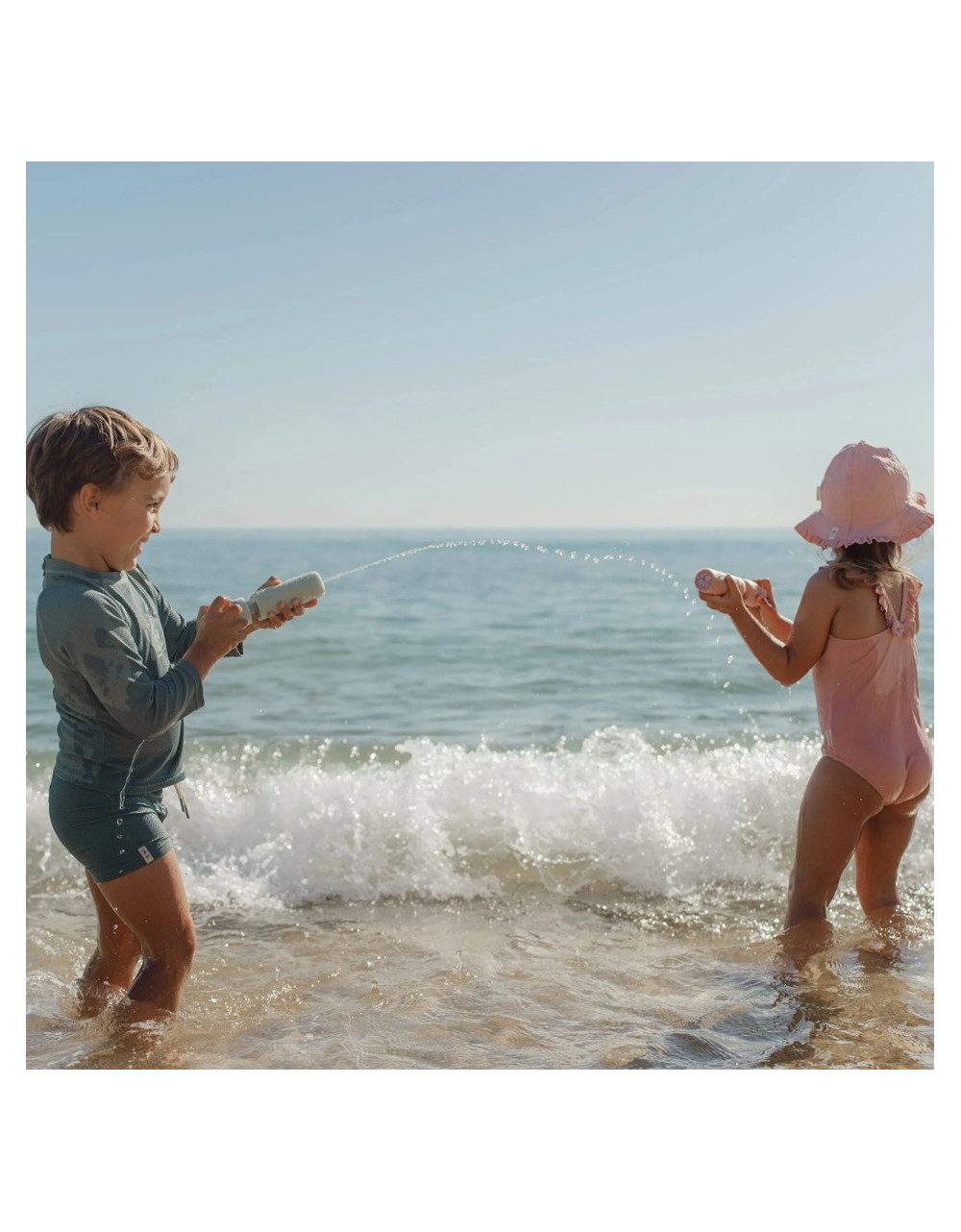 É ideal para as mãozinhas das crianças e alcança até 7 metros de distância! Preparados para uma animada guerra de água? Graças ao sistema patenteado, é fácil de usar.